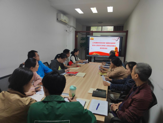 为深入学习贯彻习近平总书记关于总体国家安全观,全面落实中央八项规定及其实施细则精神,4月27日下午,公共课教学部党支部在图书馆210室开展国家安全教育暨深入贯彻中央八项规定精神学习教育主题党日活动。会议由支部负责人主持,支部挂点领导、副校长周重军及全体党员参加。