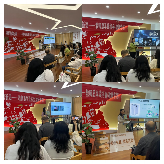 4月23日世界读书日,学校团委、公共课教学部、图书与档案管理中心联合举办“书山有路·师生共读”读书月教师专场活动——“师说新语”教师思享读书会。本次活动以教师为主体,14位教师携经典书籍登台分享,20名学生代表现场观摩,共同开启了一场跨越时空的思想对话与心灵共鸣。