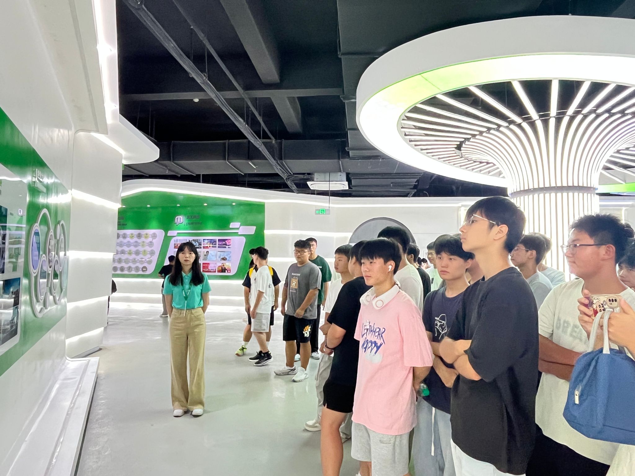 在企业展厅,讲解员向同学们详细介绍了公司的发展历程、产业布局及企业文化。同学们认真聆听,积极提问,对行业龙头企业的发展规模与技术实力有了直观地认识。