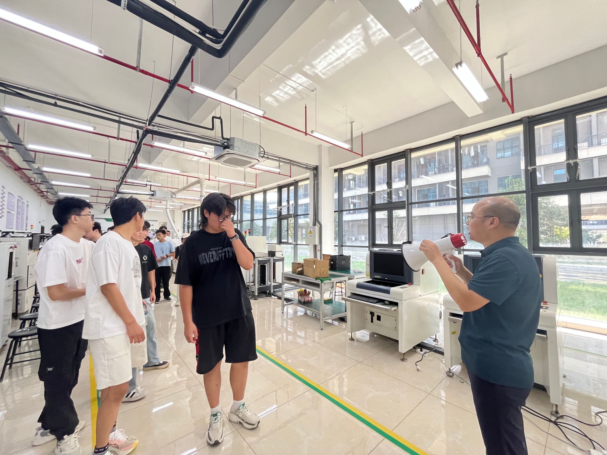 随后,同学们参观了由学校与美晨通讯共建的“厂中校”教学实践基地。在生产车间里,先进的技术设备、高效的管理流程和创新的企业文化,同学们深切感受到了科技创新的魅力和产业发展的蓬勃活力,进一步加深了对电子信息工程技术应用专业的认知。