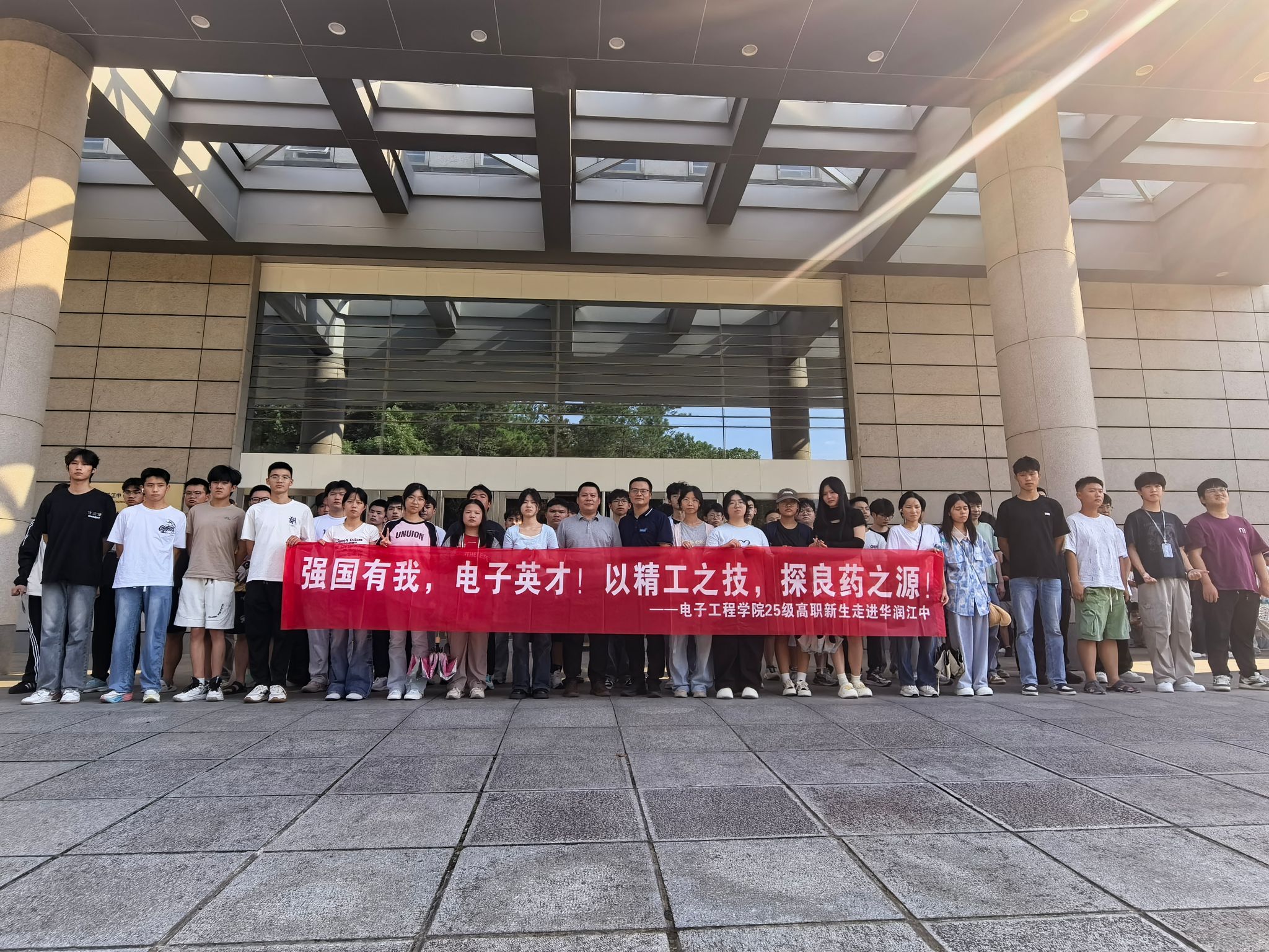“强国有我,电子英才!以精工之技,探良药之源!” —— 活动最后,同学们在华润江中颇具现代感的厂区前合影,喊出了响亮的口号。