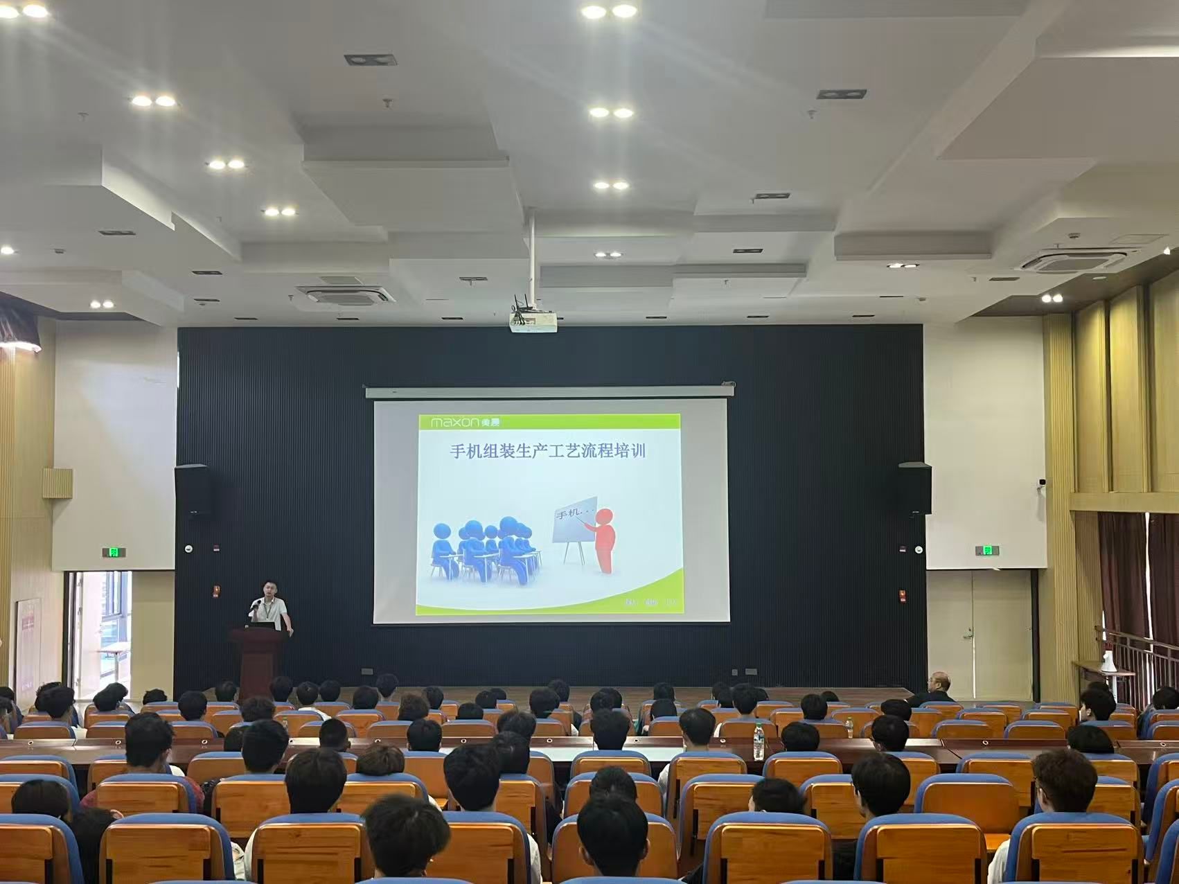 上午10:00,满载新生的车队驶向本次研学的第一站——江西美晨通讯有限公司。作为学院重要的校企合作单位,美晨通讯为同学们提供了一个近距离接触现代电子智能终端制造产业的窗口。