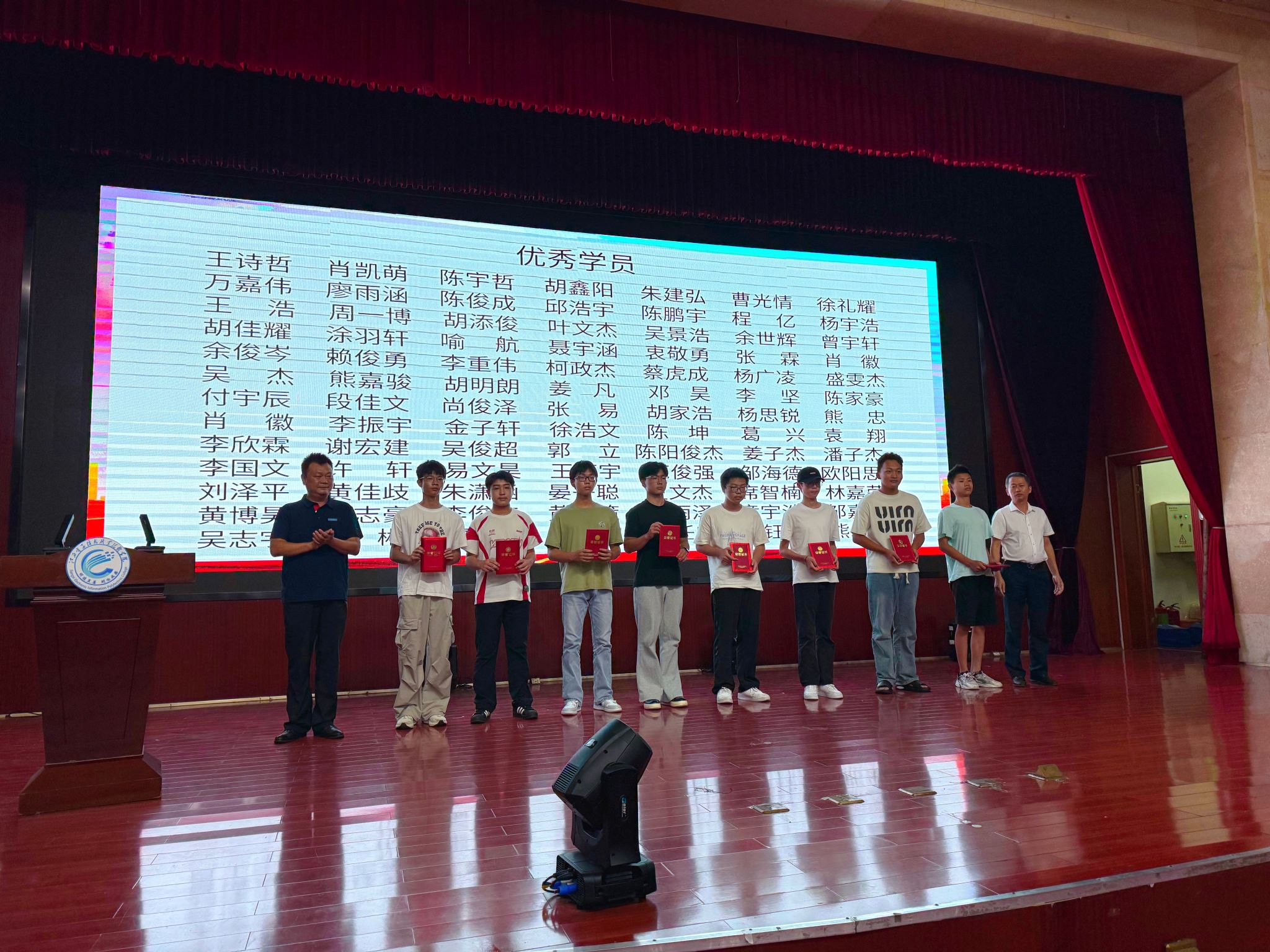 仪式上宣读了军训期间表现突出的优秀班级和优秀学员名单,并为优秀班级颁发了锦旗,为优秀学员颁发荣誉证书。机电25411班姜凡同学作为优秀学员代表发言,分享了军训期间的成长经历与真切感悟,展现出2025级新生积极进取、勇于担当的精神风貌。