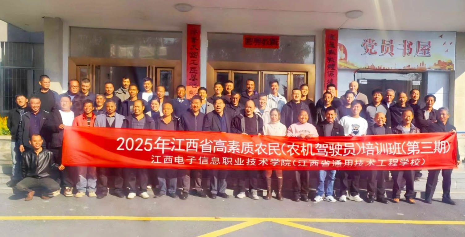 11月14日,江西省2025年高素质农民农机手(农机驾驶员)培训班第三期在江西电子信息职业技术学院顺利开班。来自广丰区、广信区、铅山县的45名农机从业人员参加培训。