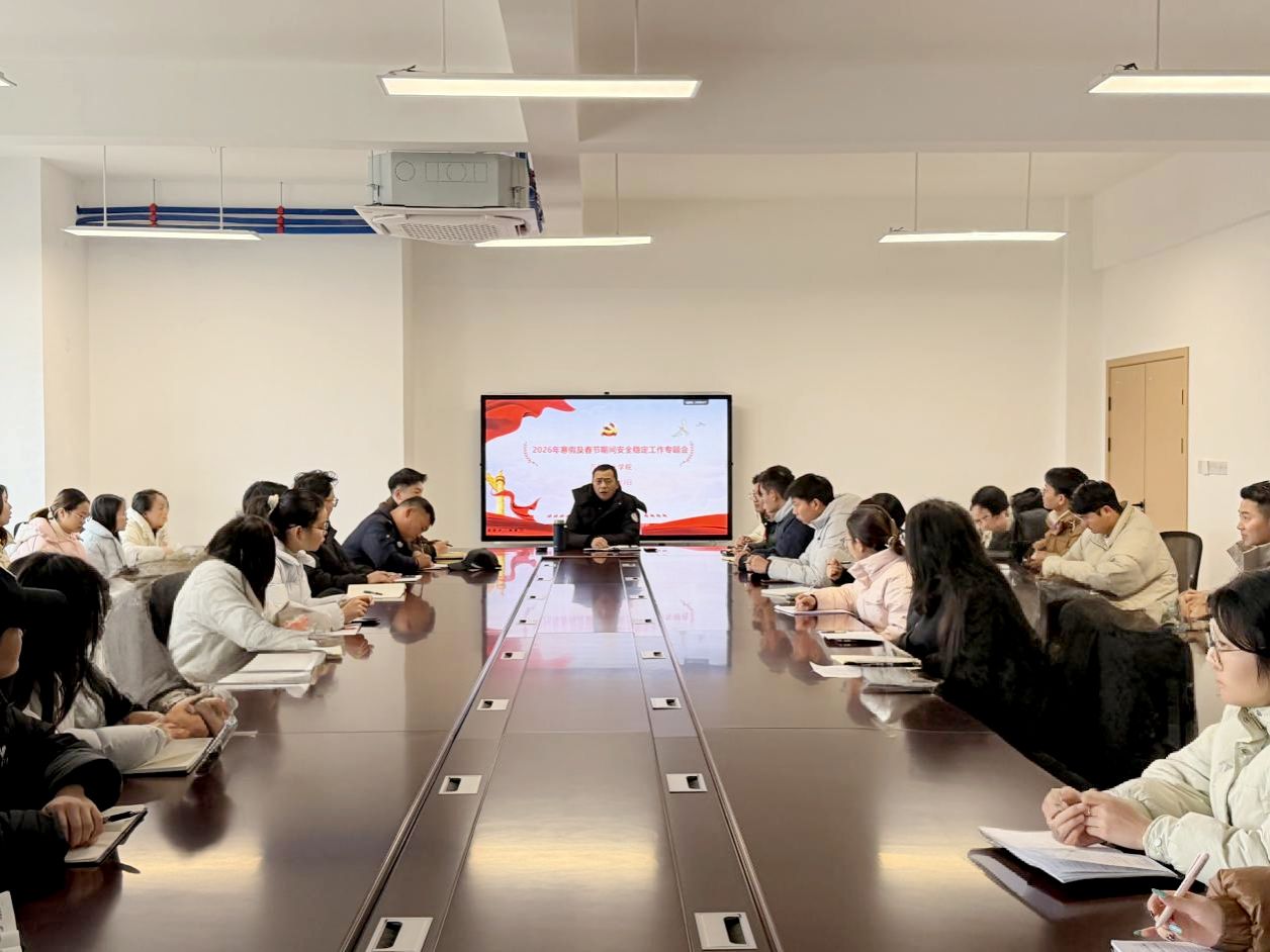 为深入贯彻落实江西省教育厅关于校园安全稳定的决策部署,切实筑牢寒假及春节期间校园安全防线,1月23日,万年产业学院召开2026年寒假及春节期间安全稳定工作专题会。全院教职工参加了会议,会议由党支部负责人陈光明主持。